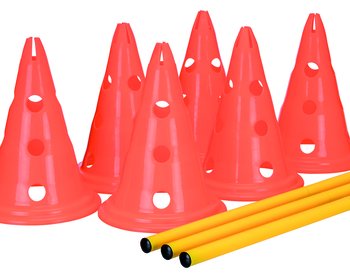 Vädertåligt agilityset som är lätt att justera i höjd. Finns med tre hinder ø23×30cm, stång 78 cm och även i en större storlek med två hinder ø30×50cm, stång 100 cm.