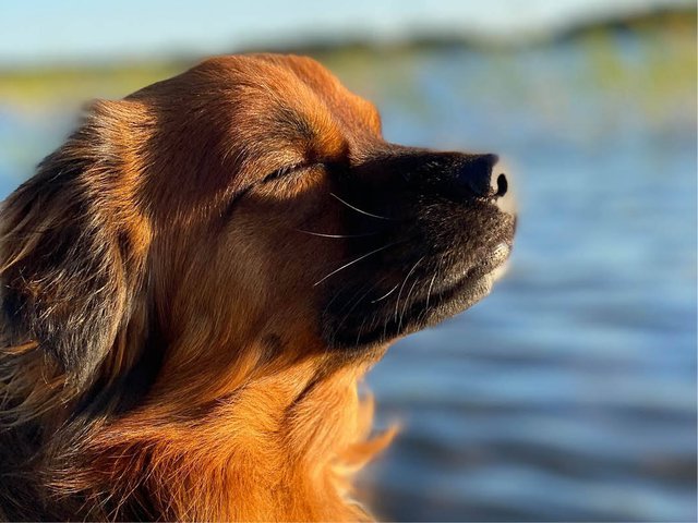 Annelie Andersson fångade hunden Diesel när han njuter av solens sista strålar på en brygga vid Nydalasjön i Umeå.