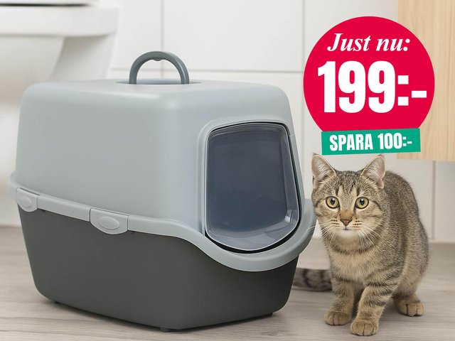 Rymlig kattlÄda tillverkad i EU av 50% Ätervunnen plast. Huv och höga kanter hjÀlper till att förhindra att kattströ smiter ut pÄ golvet och lucka som hÄller lukt borta. Praktiska snabbspÀnnen gör den enkel att öppna och rengöra.