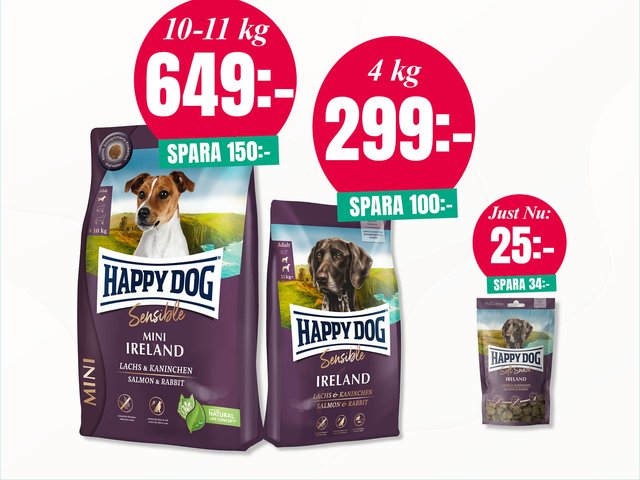 Happy Dog Ireland Torrfoder och snacks med Lax och KaninÂ