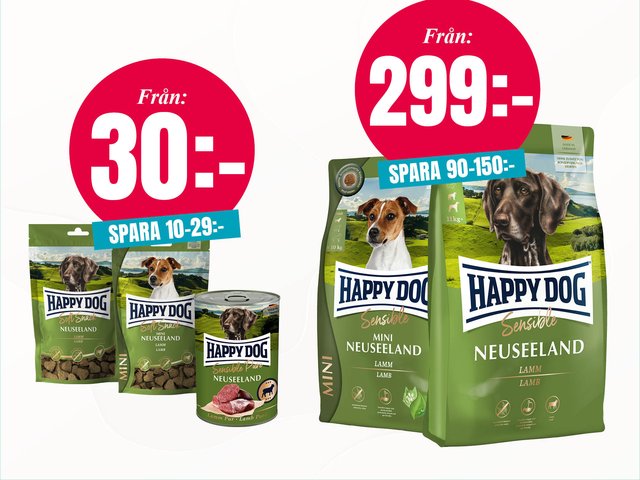 Happy Dog Neuseeland Àr vÄrt mest sÄlda foder med smakrikt lamm och lÀttsmÀlta ingredienser. Perfekt Àven för kÀnsliga hundar. Finns som torrfoder, vÄtfoder och lÀckra snacks.
