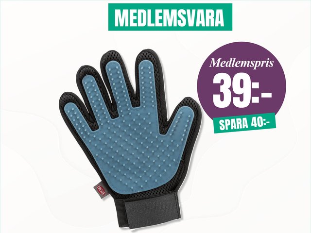 Handsken med gummiborst som effektivt avlägsnar löst hår och damm.