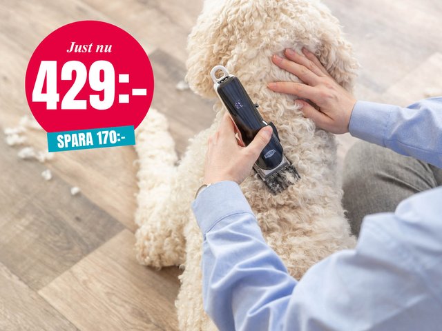 Sladdlös klippmaskin med upp till 180 minuters driftstid. Levereras med fyra distanskammar. Justerbart klipphuvud gör det enkelt att anpassa klipplÀngd, och den tysta motorn sÀkerstÀller en behaglig upplevelse för bÄde dig och din hund.