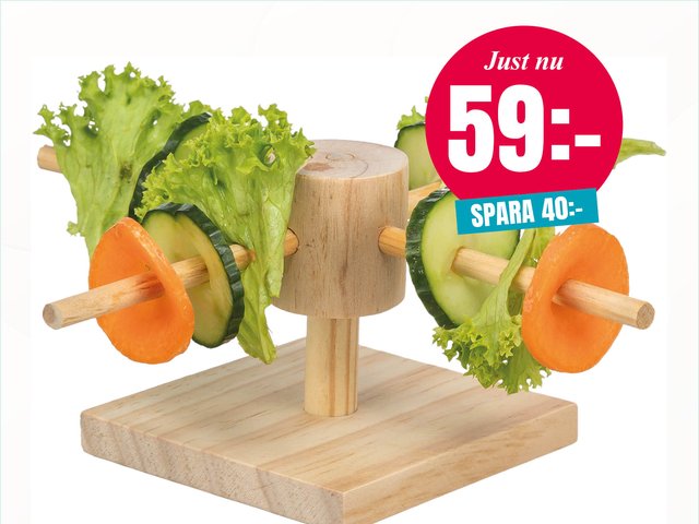 Servera snacks pÄ ett finurligt sÀtt! Berikande inredningsdetalj, perfekt för att servera grönsaker, blad och hö. TvÄ extra spett ingÄr. Obehandlat trÀ. Storlek: 22x8x22 cm.